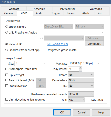 After filling in the information required, click OK. The second window will appear titled New Camera. Here you can make many adjustments to the way you want Blue Iris to configure your camera.