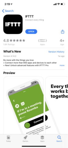 Enter https://ifttt.com/ in the address bar of a browser or download and install the “IFTTT” App from the Apple Store or Google Play.