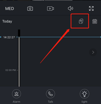 The device supports both cloud recording and SD card recording mode. The timeline displays videos that are in the cloud by default. If you need to view the video on the SD card, please switch the viewing way to SD card using one of the following ways: