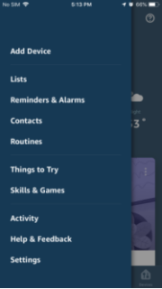 Log in to the Amazon Alexa app, open the sidebar from the top left corner, and enter the “Skills & Game” page, search for “blurams” in the search bar to find the blurams skills.