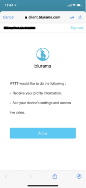 Search and select “Blurams” service, then select the device which you need to enable push-notifications for it. If you have not used Blurams service before, then you need to do an authentication between your Blurams account and IFTTT first.