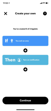 Sign up and log into the IFTTT App, now you’re ready to create an Applet with Blurams service. As an example, we will demonstrate how to use the Blurams service by creating an Applet that “turns on push notification when you leave a place.