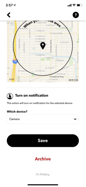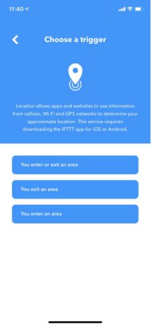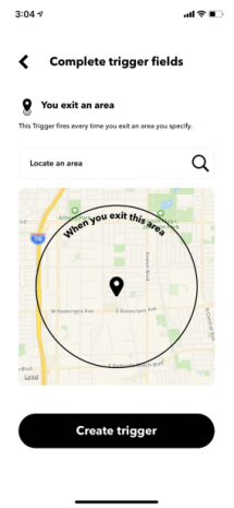 Select the Location service first, then select “You exit an area” and locate an area on the map.
