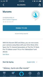 In the search result page, click “blurams Skill” and go to the Skill page, click “ENABLE” and follow the instructions to link Amazon to your blurams account.