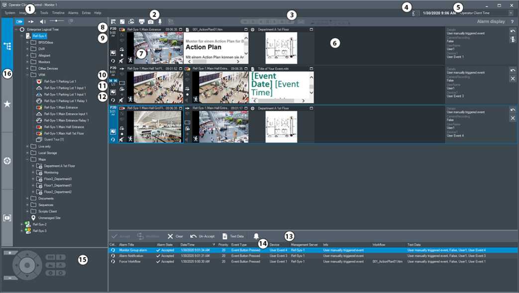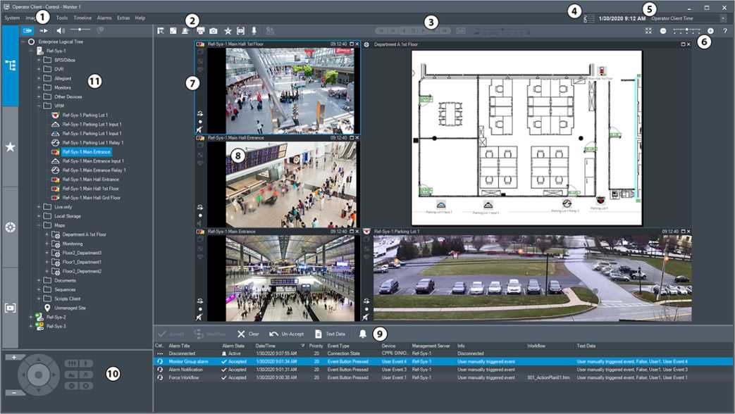 11 Logical tree window Displays the devices your user group has access to. Allows you to select a device for assigning it to an Image pane.