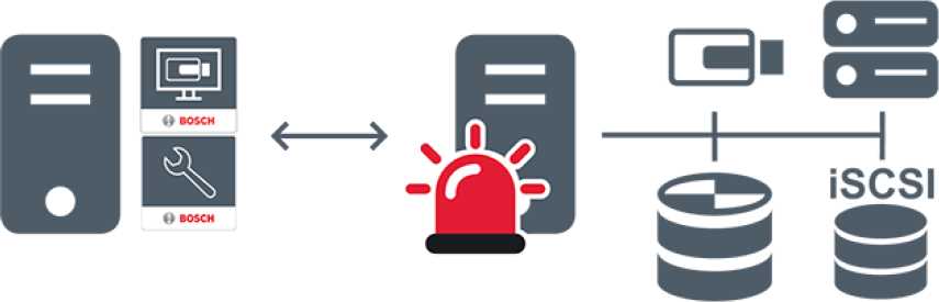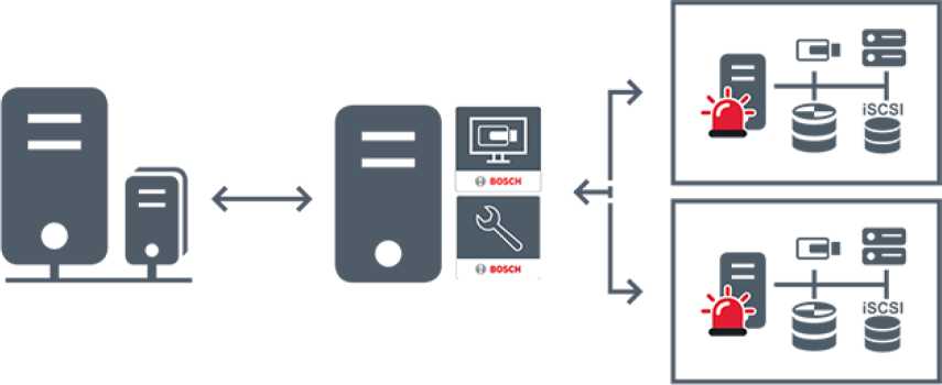 • A BVMS Management Server provides management, monitoring, and control of the entire system.