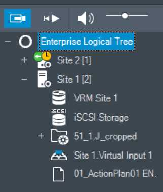 Tree with a customized structure of all the devices. The Logical Tree is used in the Operator Client to select cameras and other devices. In the Configuration Client, the “Full Logical Tree” is configured (on the Maps and Structure page) and tailored for each user group (on the User Groups page).