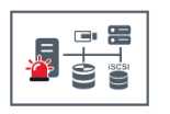 Internet Small Computer System Interface. Protocol that manages storage via a TCP/IP network. iSCSI enables access to stored data from everywhere in the network. Especially with the advent of Gigabit Ethernet, it has become affordable to attach iSCSI storage servers simply as remote hard disks to a computer network. In iSCSI terminology, the server providing storage resources is called an iSCSI target, while the client connecting to the server and accessing the resources of the server is called iSCSI initiator.