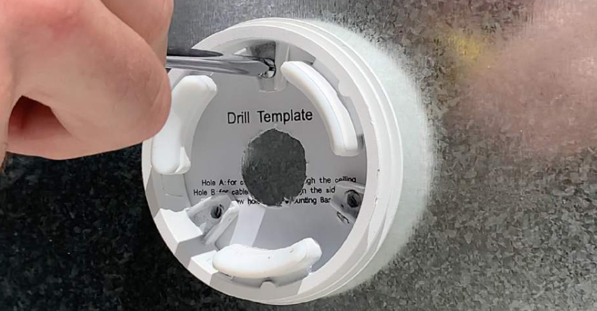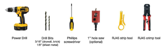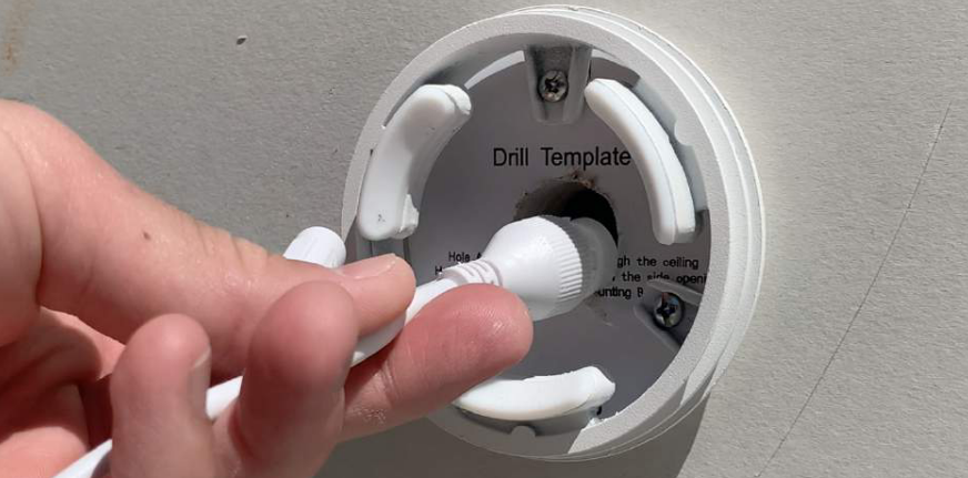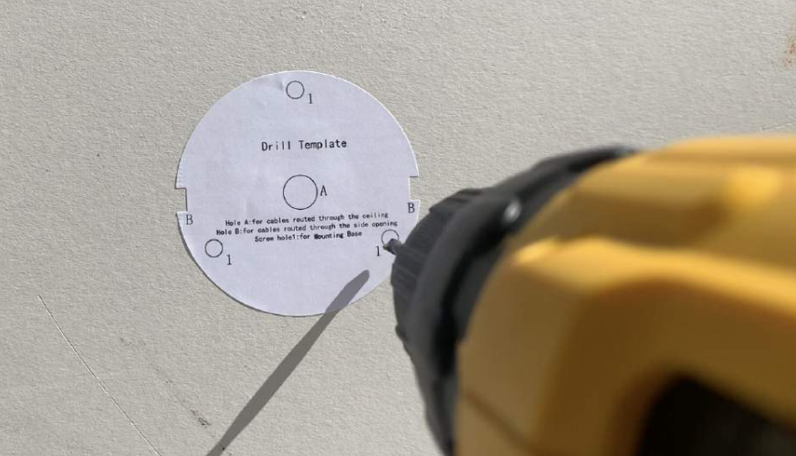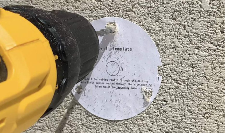 If routing the ethernet cable internally, use a 1” hole saw to create the routing hole according to