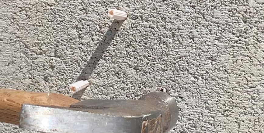 Apply the cinder block / brick wall anchors and gently hammer them in.
