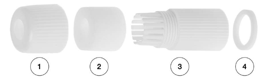 Assemble the (1) screw cap then (2) the main housing with grommet insert onto the ethernet