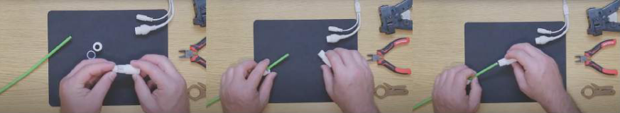 Lastly, tighten the end cap to create a watertight seal of the grommet on the wire jacket.
