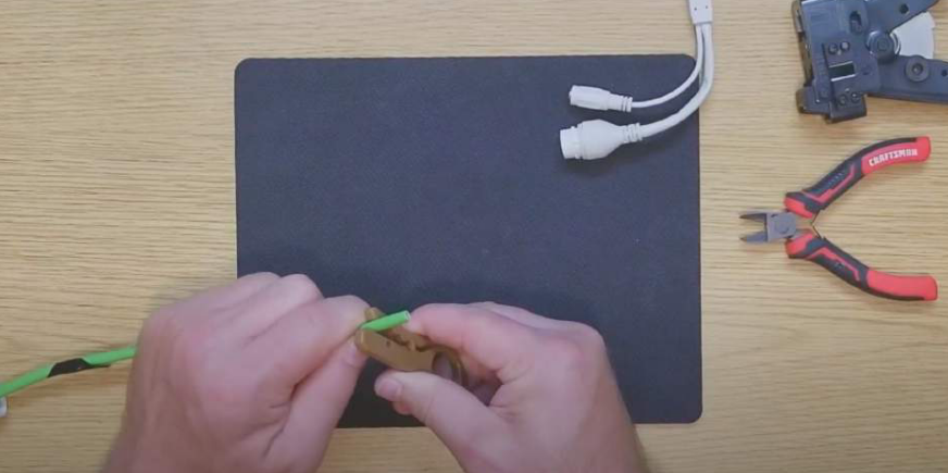 Using an insulation removal tool, strip the cable jacket of your ethernet cable.