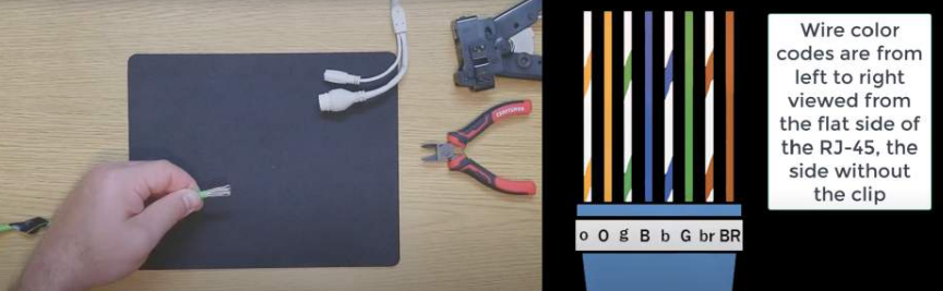 Prepare the wires for the RJ45 connection by trimming the wires to 1/2″ in length.