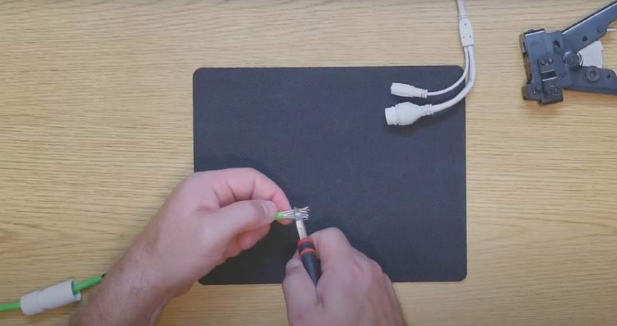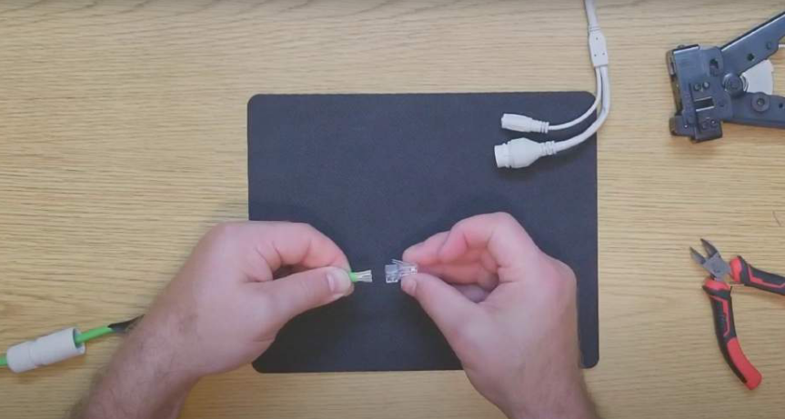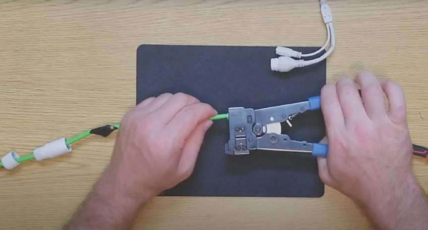 Then place the RJ45 connector into the crimping tool and crimp the wire.