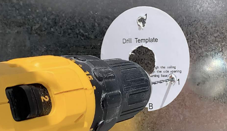 Drill three holes according to the drill template using a 1/8″ drill bit.