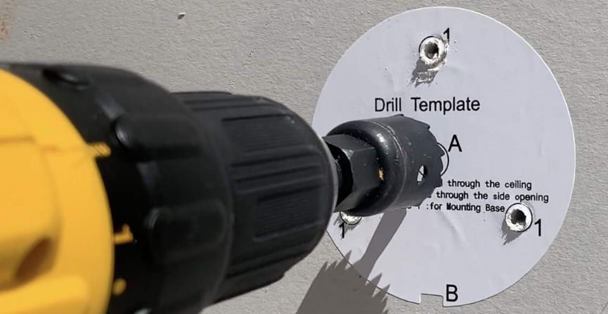 Drill three holes according to the drill template using a 3/16” masonry drill bit.