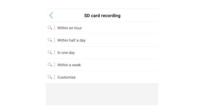 Click the button https://i0.wp.com/camhi.pro/wp-content/uploads/2021/06/Search-icon.png?resize=37%2C38&ssl=1on the recording list interface, the search option appears, you can select the recording search range as needed.