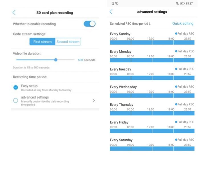 Recording a video for 15 seconds, then save to TF card (including 1-3 seconds warning before video)