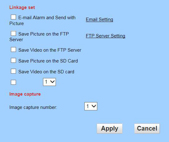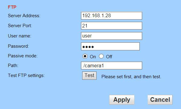 After filling in, click the Apply button, then click the Test button to check if you can send an alarm picture to FTP.