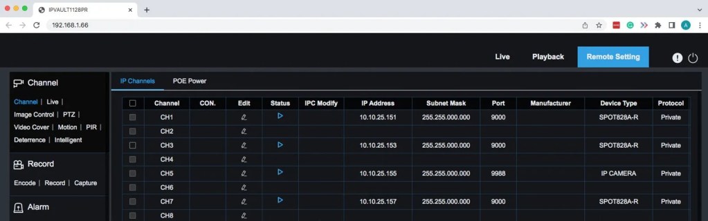The below picture is based on the IPVAULT1128PR’s web browser view