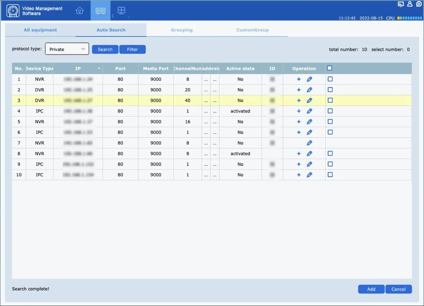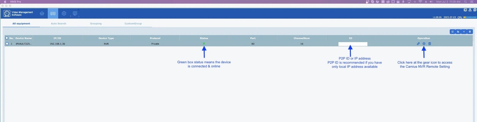 If you are accessing the VMS / VMS Pro remotely (not in the same LAN), then navigate to the Home tab >> Device Management >> All Equipment. If devices were added successfully, they would be displayed here.