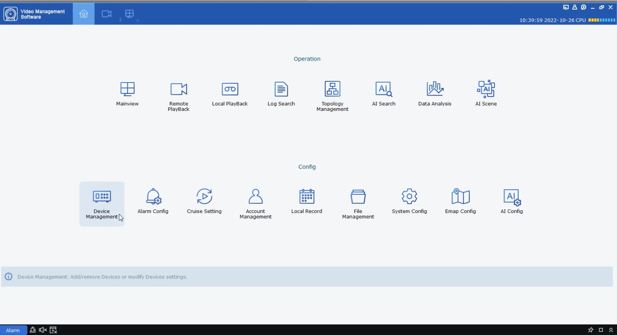 After installing the VMS software, please click on the Home tab on the left and then on Home >> Device Management (Picture 1)
