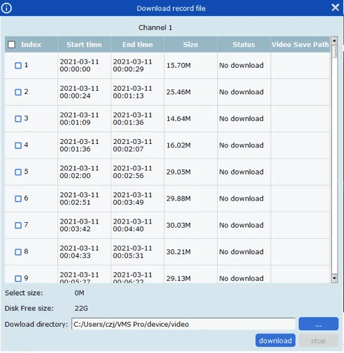 Step 1: Select a video window that has enabled recording, and click the download button in the playback control area. A dialog box is displayed, as shown in the following picture: