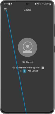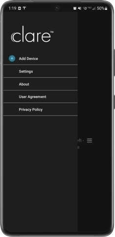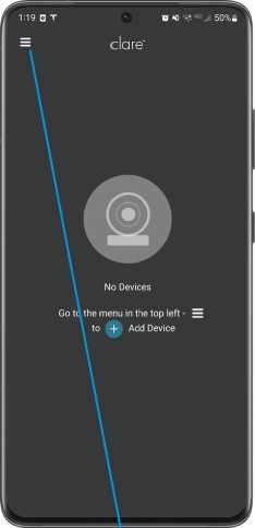 Tap the menu icon to open the main app menu. Here you can add devices, change global app settings, and view software information.
