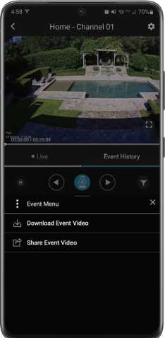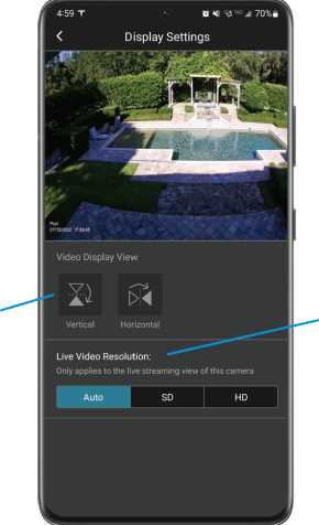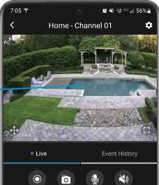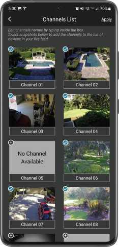 Note: You can view all your available camera feeds by scrolling the screen up/down.