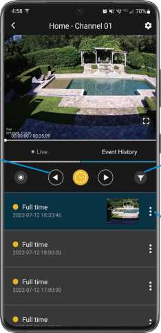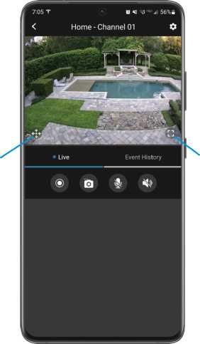 You can tap on any live video feed to open Live View mode. Here you can view the camera