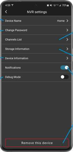 You can easily toggle motion notifications, rename your devices devices, change passwords, manage