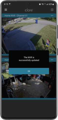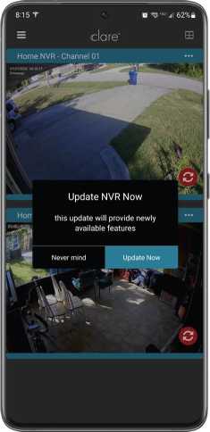 Note: Tapping the red update icon when using an NVR will update the NVR. Tapping the icon