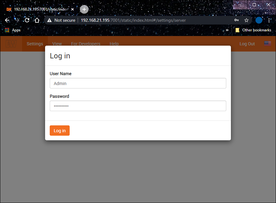 To open the web client using a web browser, open a web browser and enter the server’s Web Admin URL into the address bar, then press the Enter key.