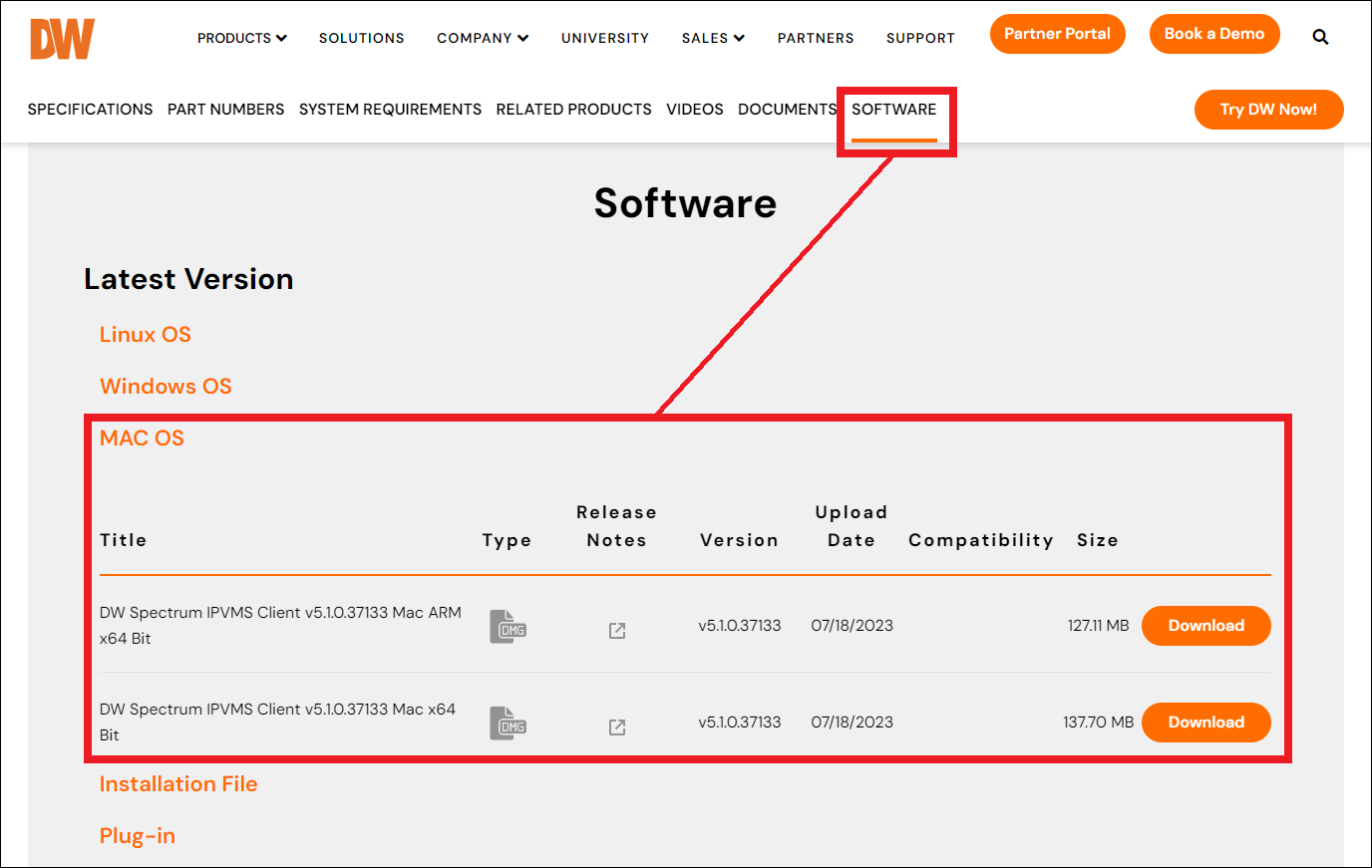 **NOTE: “<version_number>” (above) refers to the DW Spectrum® Client software version number.