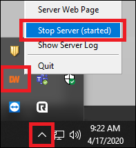 - Next, stop the Spectrum Media Server service. To do so, you can right-click on the service in the Windows Service Tray, then select Stop Server (started).