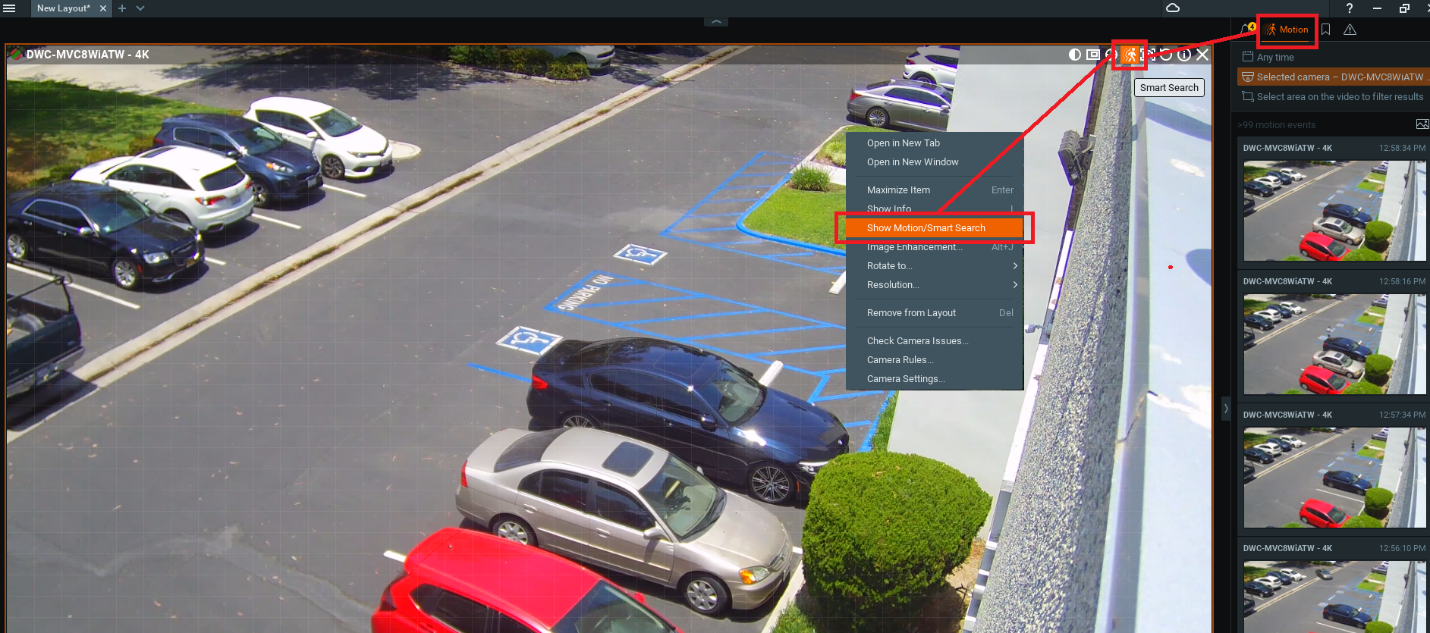 Alternatively, you can right-click in the camera window and select Show Motion/Smart Search.