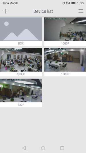 The camera list panel contains all cameras you have added to your account. Each preview picture has various indicators for online, password changed status,offline or alarm.