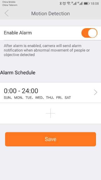 The camera carries the mobile detection and alarm. After the mobile detection is opened, the alarm information can be sent to the mobile phone when the camera detects the moving events and the objects are moved.
