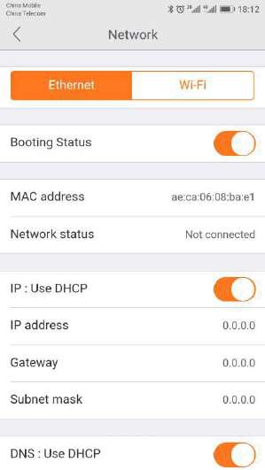 The Network Tab enables you to choose the network interface that you want to use – Ethernet or Wi-Fi. When you choose Ethernet, you can view the MAC address, the network status, and the IP information.