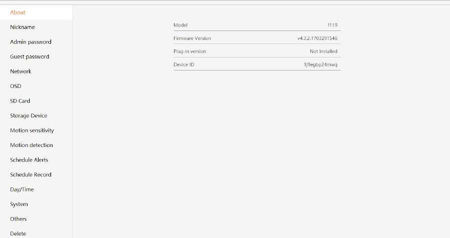 The Device Settings Page features a number of different tabs that are just to the right of your cameras. You are able to switch between the different cameras to access the settings information for each of them. Let’s look at the long list of items under this section.