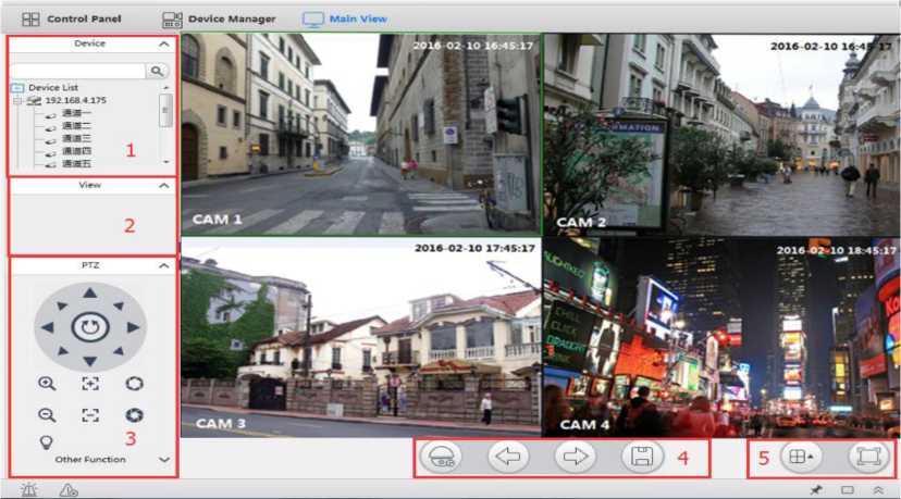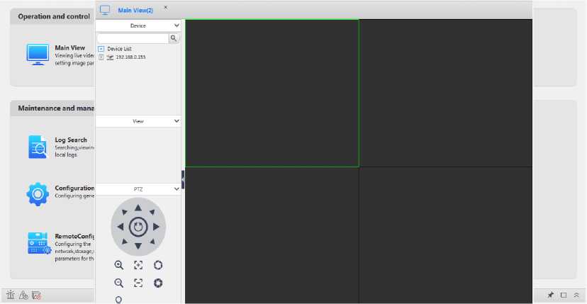 Main View: Viewing live video, controlling PTZ and setting image parameters. When you