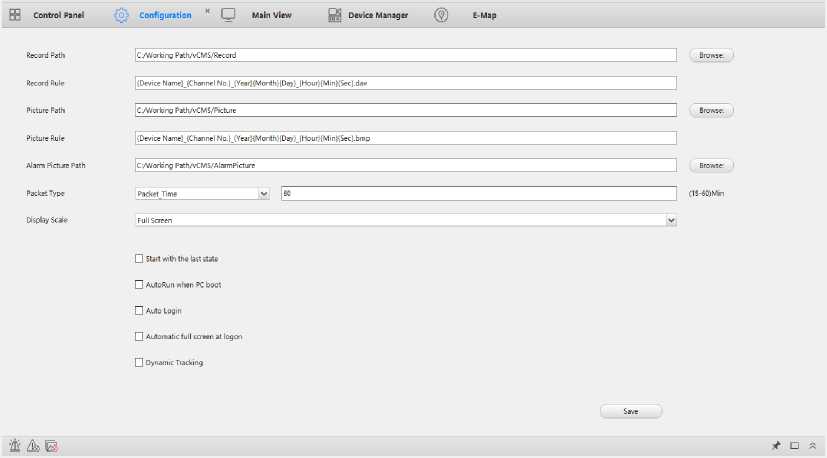 - AlarmPicPath: Set the path of auto snapshot when alarm triggered.