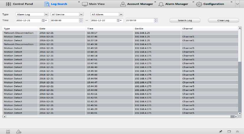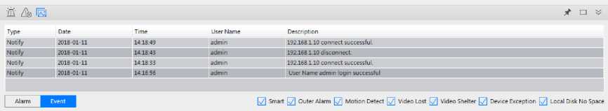 to open Log Search interface, you can view all the alarm and operation logs here.