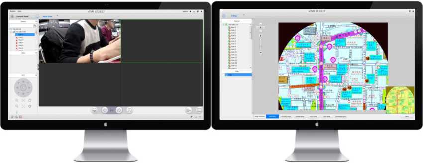 You can drag label page to the other monitor. For example, you can drag ‘E-Map’ to Monitor