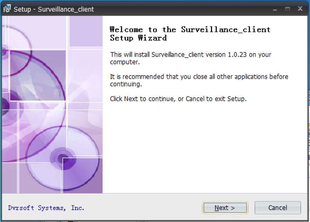Double click the installation file “Surveillance_client_1.0.23_2013_07_30” to install the software.