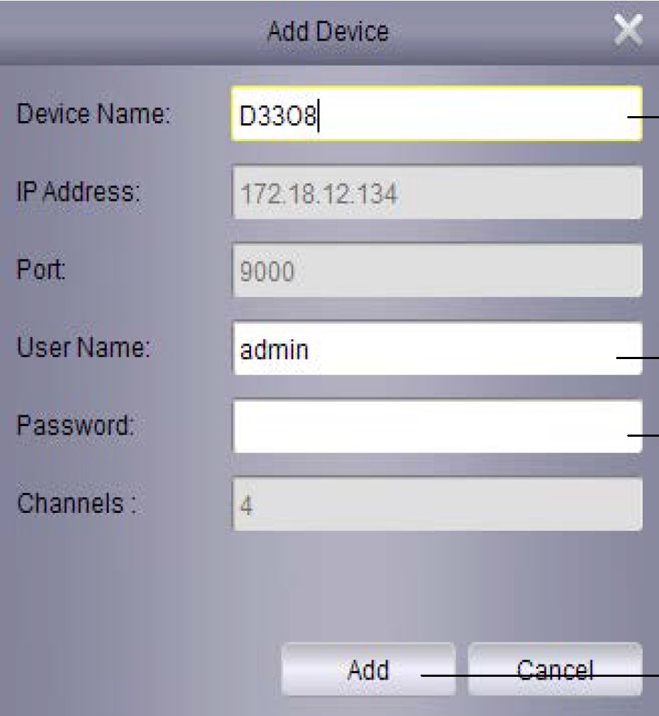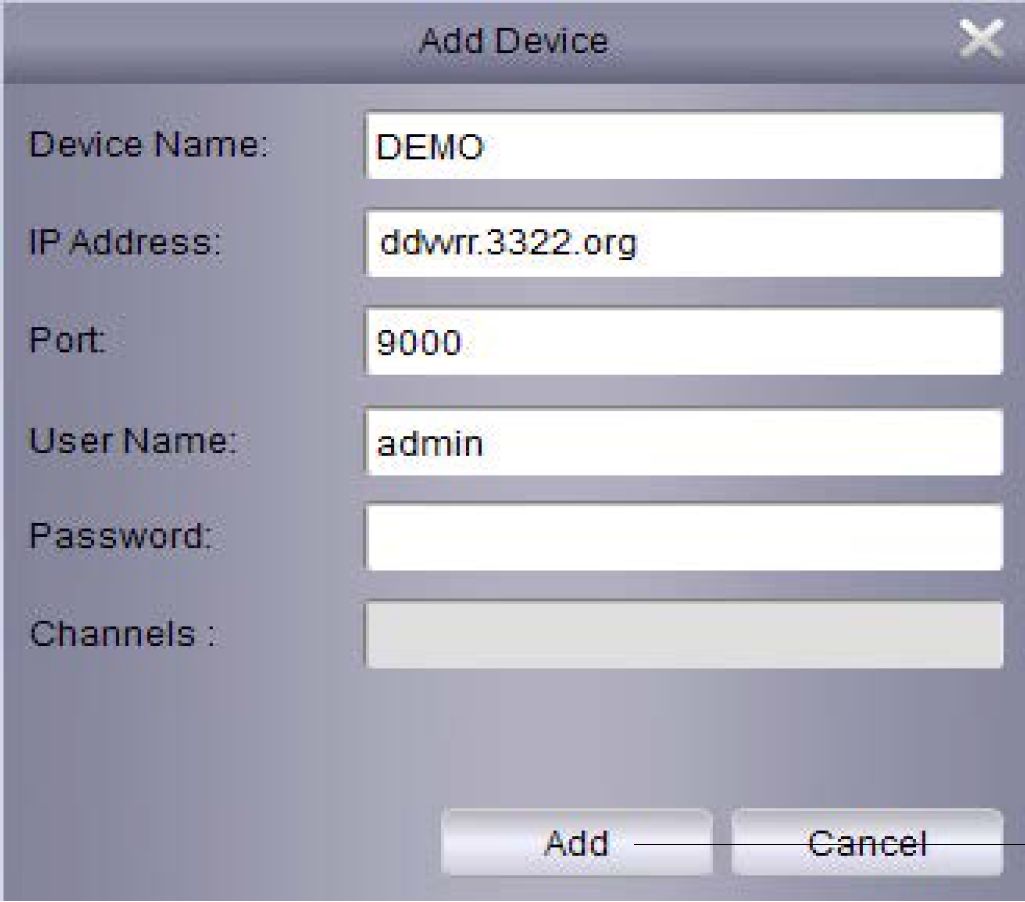 - Input the name of the selected DVR in Device Name field, e.g. home, office, etc.