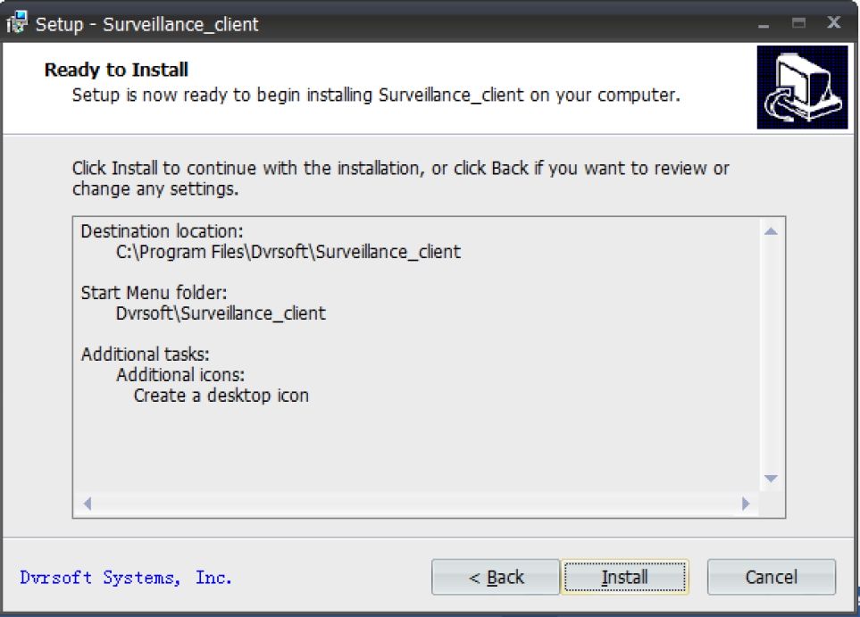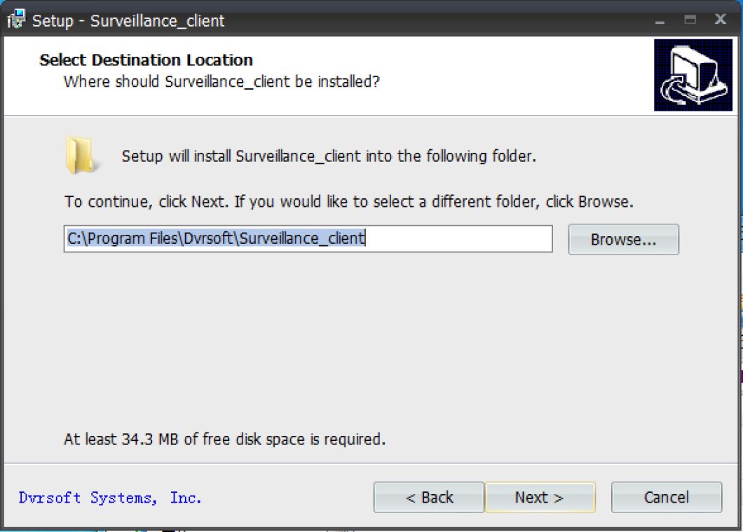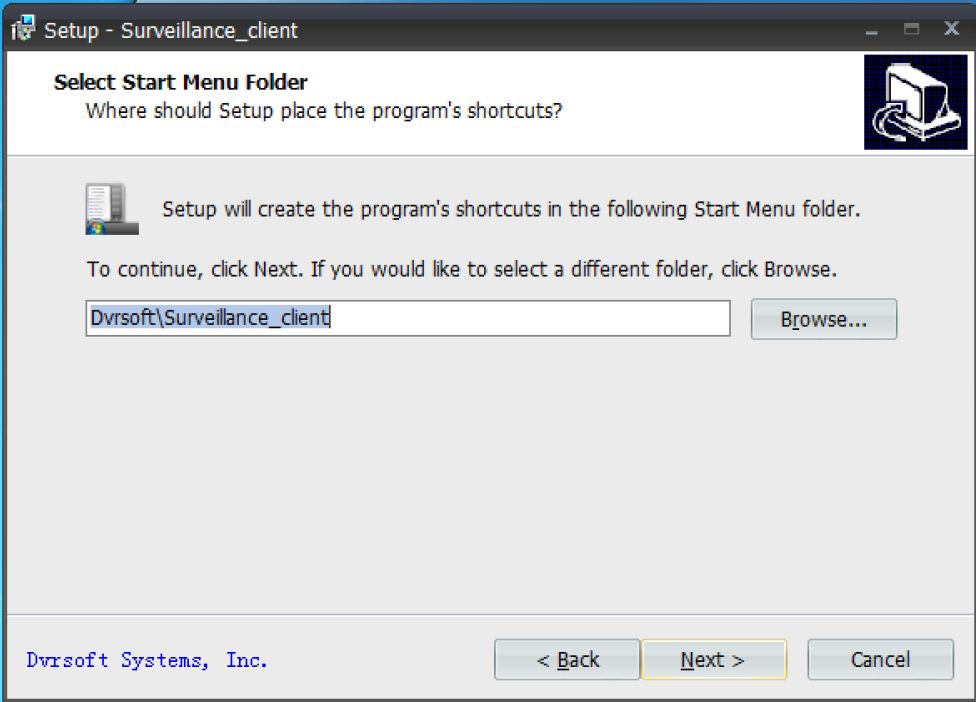 is Dvrsoft\Surveillance_client. If you want to select a different folder, please click Browse to customize.