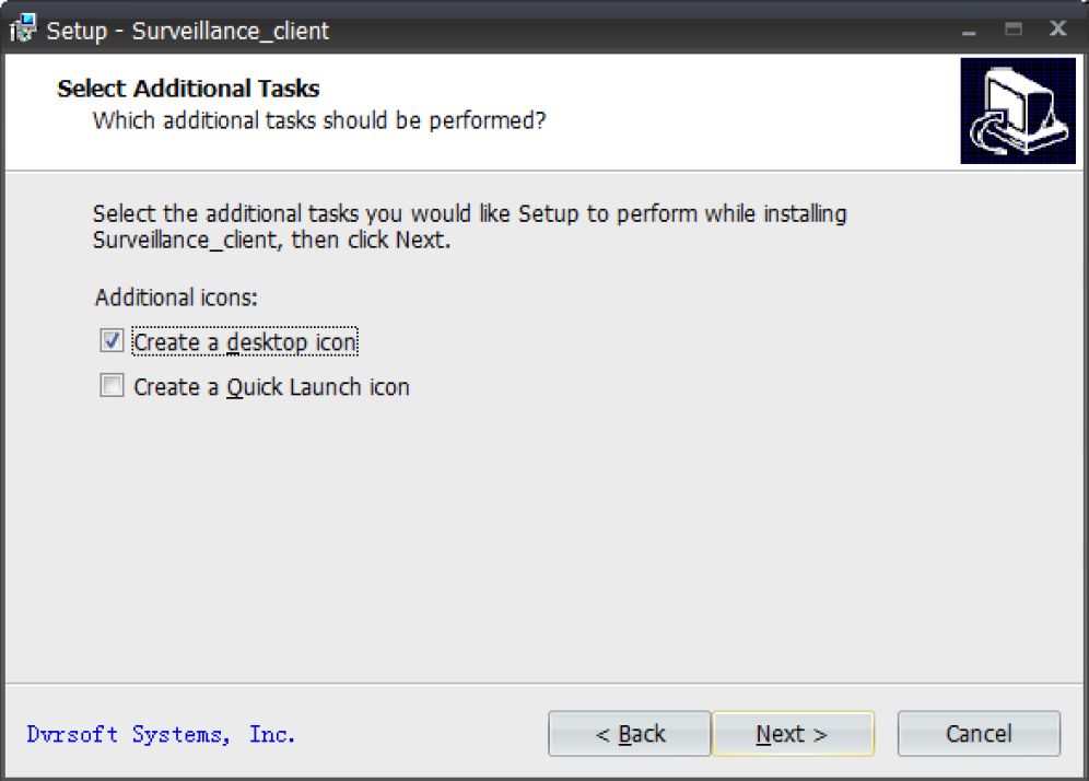- Select the additional tasks you would like Setup to perform while installing Surveillance_client.