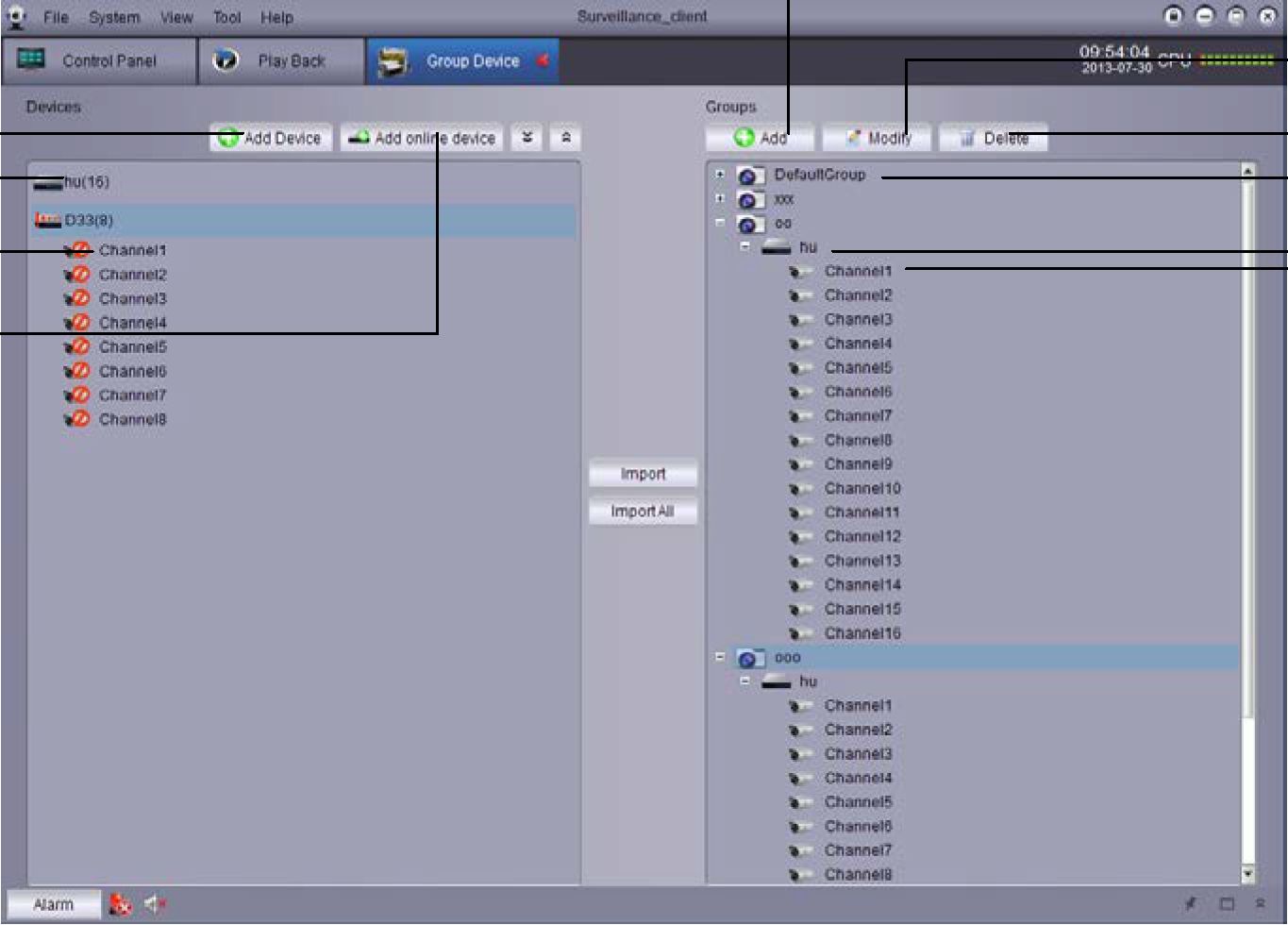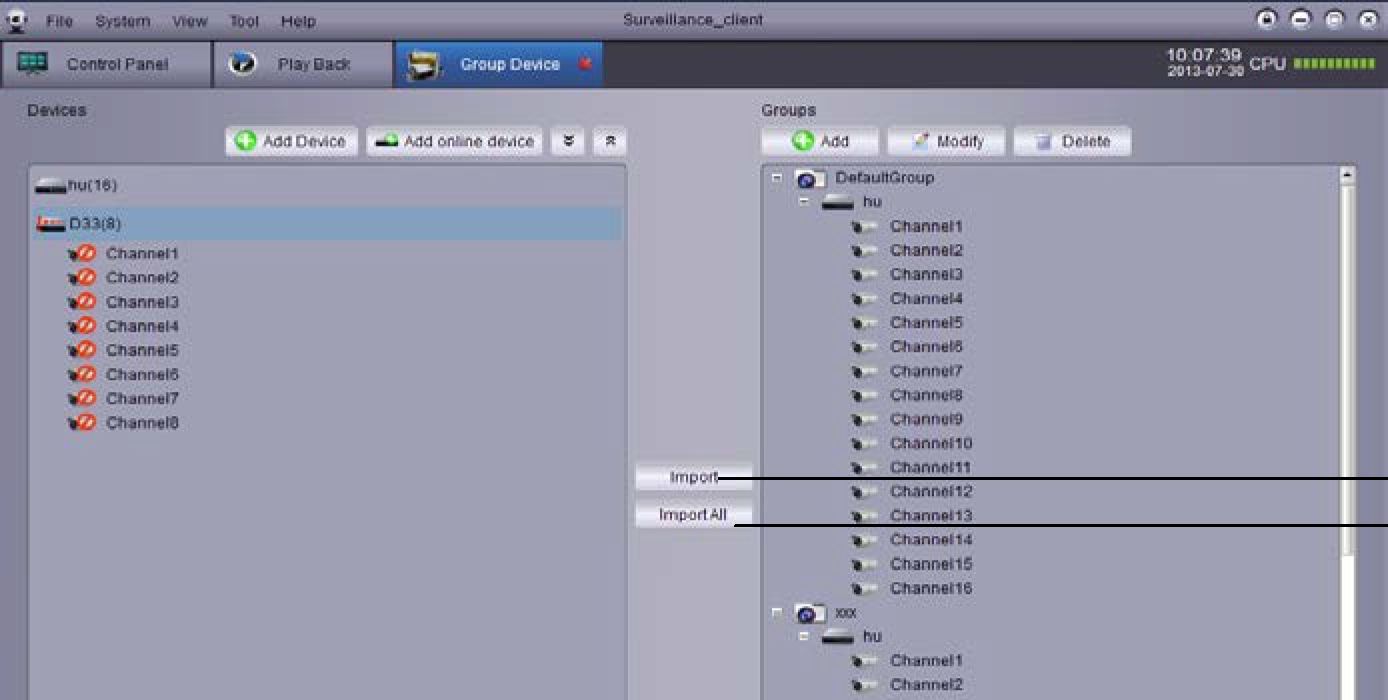 - Click a DVR in the list and the added devices, IP address, port and channel number will be displayed. Click Add Selected Device to add.